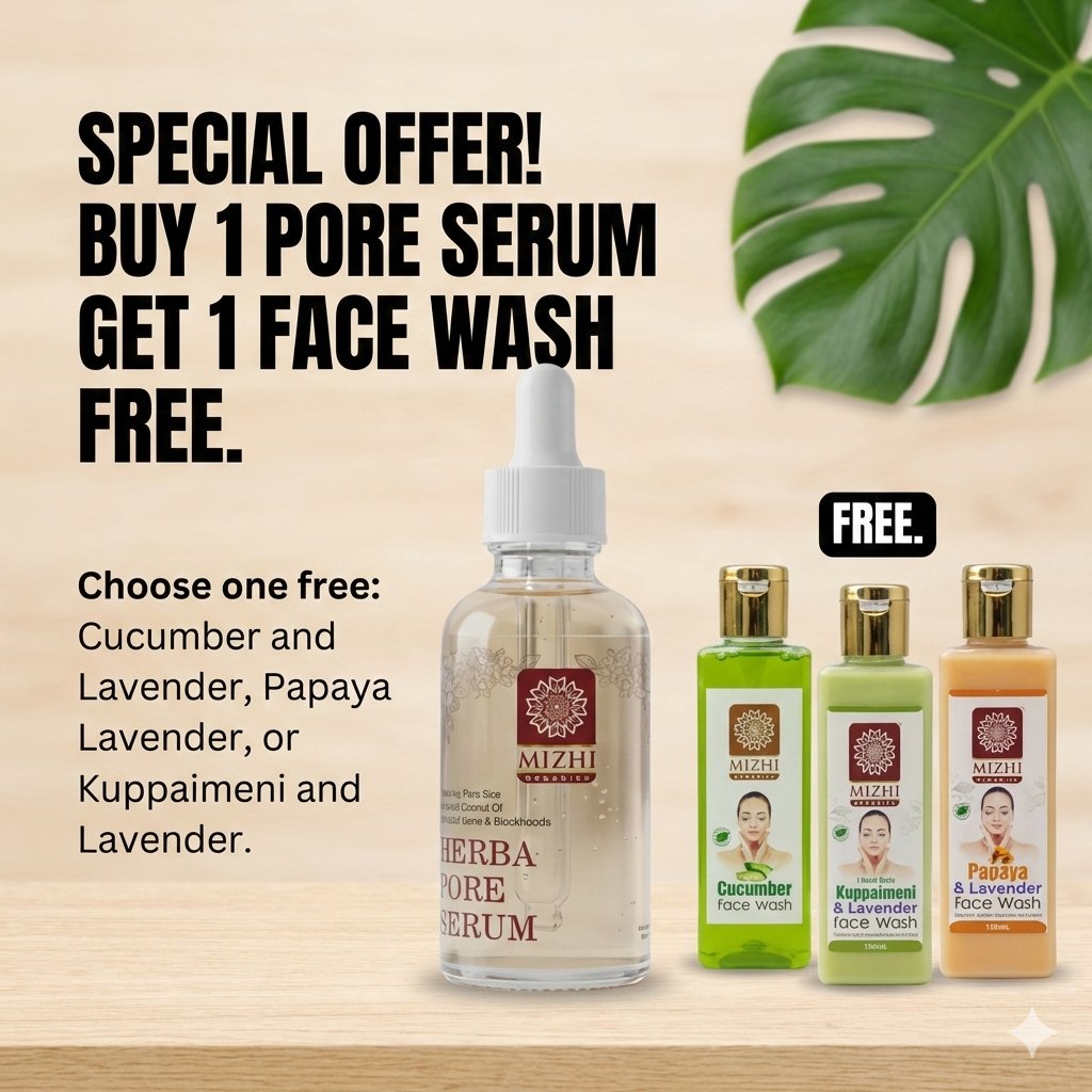 Be the first to review “Buy 1 Pore Serum Get 1 Face wash(Cucumber and Lavender/Papaya Lavender/Kuppaimeni and Lavender) Free”